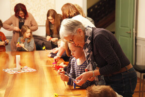 Zur gleichen Zeit wird für Eltern, Begleitpersonen und Geschwister ein ElternHort angeboten. Katechetinnen und das Team Chenderfiire gestalten diesen Begegnungsraum, in dem spannende Gespräche entstehen können. Besuchende lernen die Religionslehrpersonen besser kennen und können sich in entspannter Atmosphäre austauschen. Für kleinere Geschwister stehen Spiele, Malutensilien und Bastelsachen bereit.