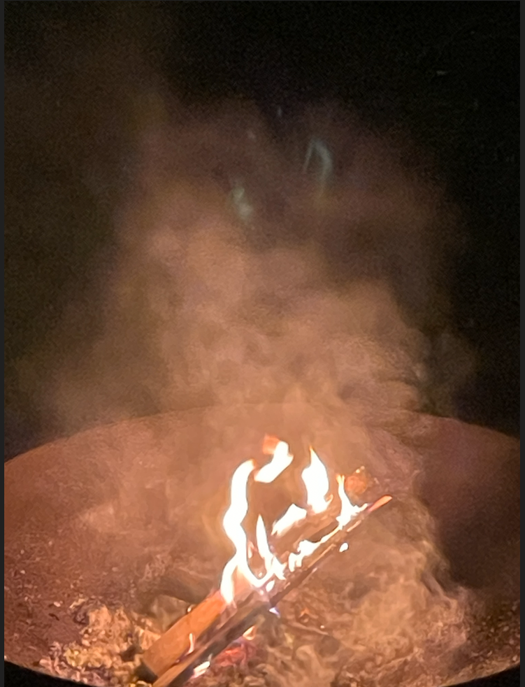 Nach diesem Begrüssungsteil ging es ins Freie, mit der eigenen brennenden Kerze in der Hand, in die klirrende Kälte. An der Biegung der Luthere ausserhalb des Dorfes wartete eine Feuerschale mit Holz und wurde entzündet. Hell loderte das Feuer auf und gab Wärme. Dann konnten die Teilnehmenden Bündeli aus getrockneten Heilkräutern des Sommers zum Glimmen bringen und mit dem Rauch der Heilkräuter ein umfassendes Segensritual für das neue Jahr begehen.