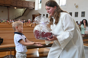 Am Sonntag, 18. Juni feierte Sie ihre erste Messe mit den Gottesdienstbesuchenden in Menznau. Mit Blumen, Geschenk und Willkommensworten von Kirchenratspräsident Stefan Rossdeutscher wurde sie in herzlich begrüsst.